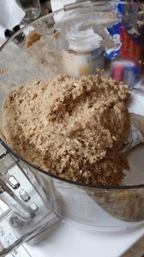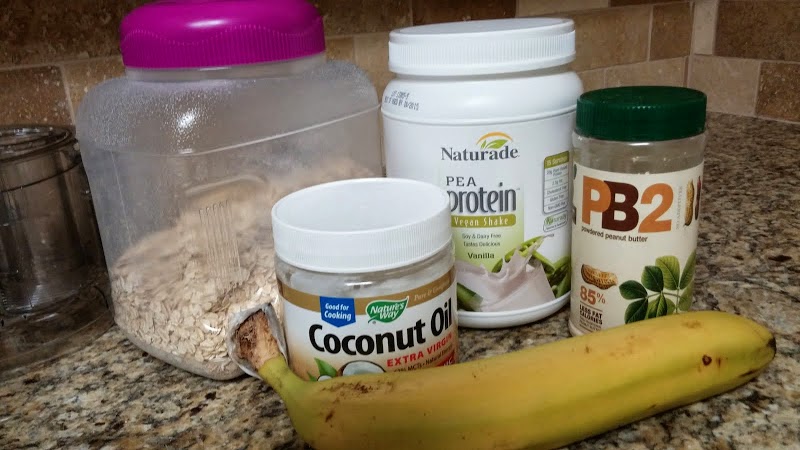 The oatmeal is just a filler to make everything stick together. You can also use another flour like whole wheat or coconut --yum. You may need a bit less depending on how much banana or PB2 you decide to put in. Use what you need to make the mixture stick together as oats tend to take over the flavor. Mix together all the ingredients and the 'dough' should ball up and look like this soft gooey mixture: